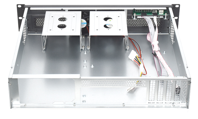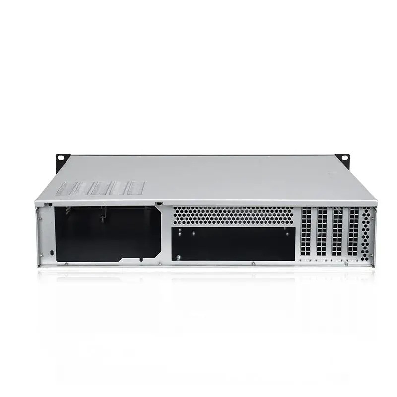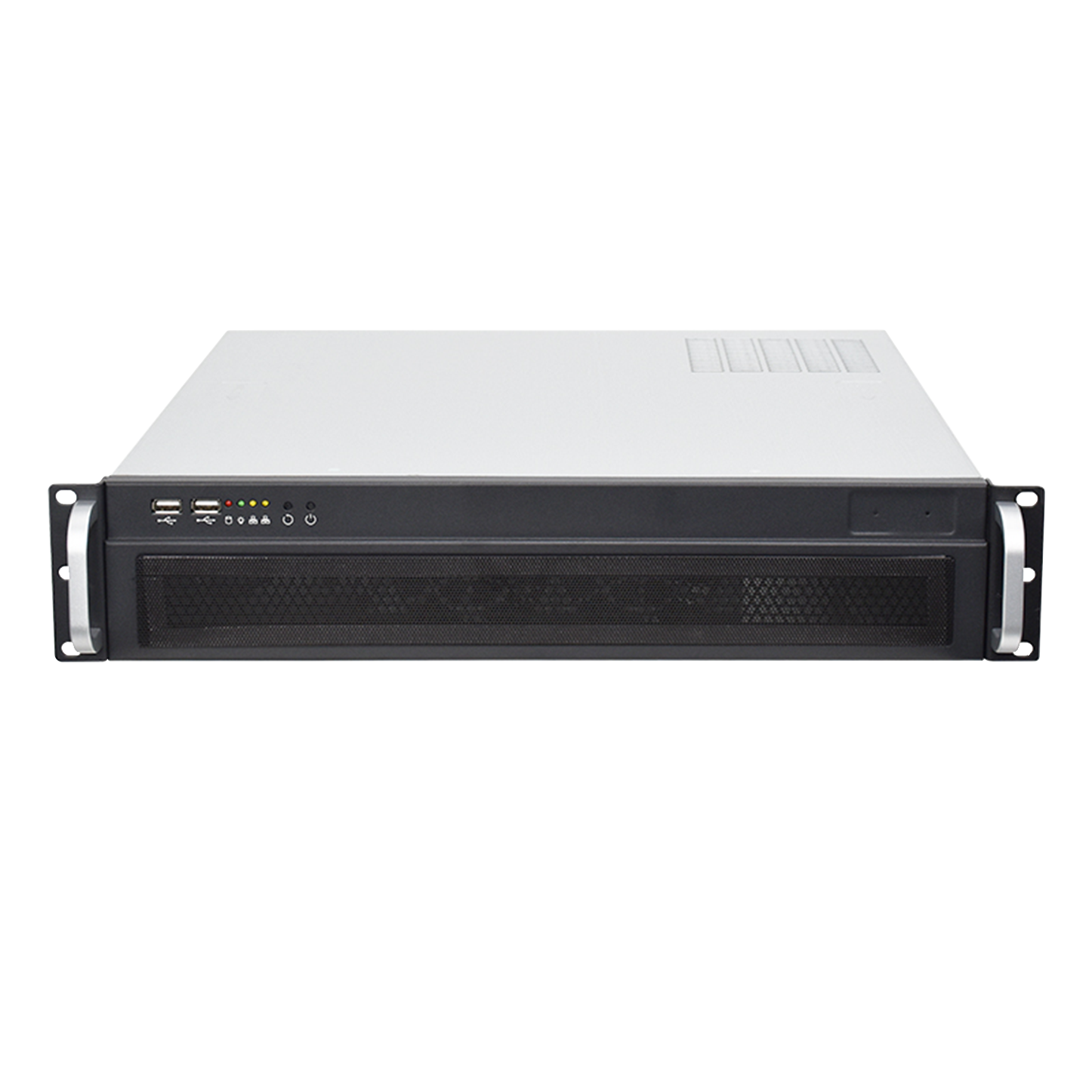 This 2U server chassis features a durable design with quality fine 1.0mm SGCC material, supporting Micro ATX and Mini-ITX motherboards. It includes 4 half-height PCIe expansion slots, 2pcs 80mm cooling fans, and a front panel with USB2.0, power button, and multiple indicators for convenient control. The compact dimensions (L380mm*W430mm*H89mm) make it ideal for electrical power rooms and control centers.