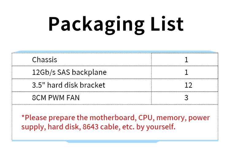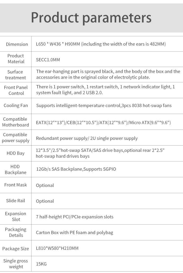| HDD Bay | 12*3.5"/2.5"hot-swappable SAS/SATA drive bays |