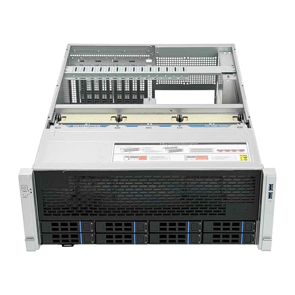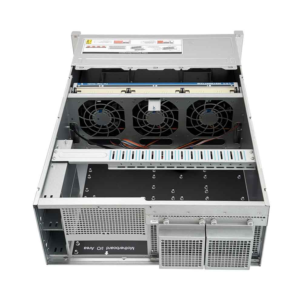 This 4U server chassis features a robust design with a fine 1.0mm SGCC, aluminum alloy, and plastic build, ensuring durability and quality. It supports HPTX,EATX, ATX, Micro ATX, and other motherboards, offering versatile compatibility. Equipped with 8 hot-swap SAS/SATA drive bays, a 12Gb/s SAS backplane, and 11 full-height PCIe expansion slots, it provides extensive storage and expansion capabilities. The intelligent temperature control system with 3 hot-swap fans ensures efficient cooling. Front panel controls include USB 3.0 ports, power and restart buttons, and system indicators for enhanced usability.