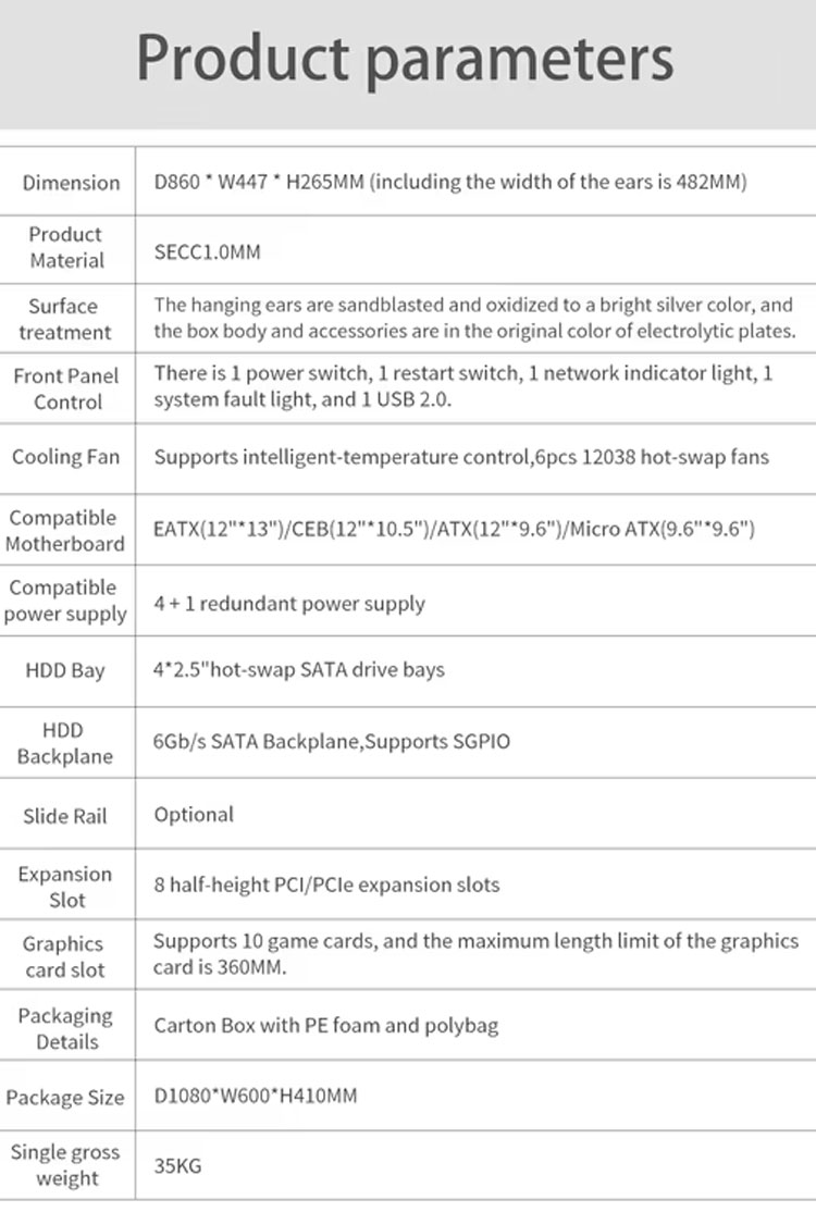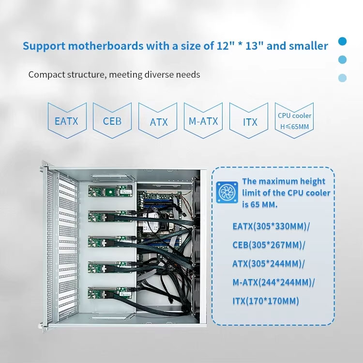 | Suitable Motherboard | EATX(12"*13")/CEB(12"*10.5")/ATX(12"*9.6") |