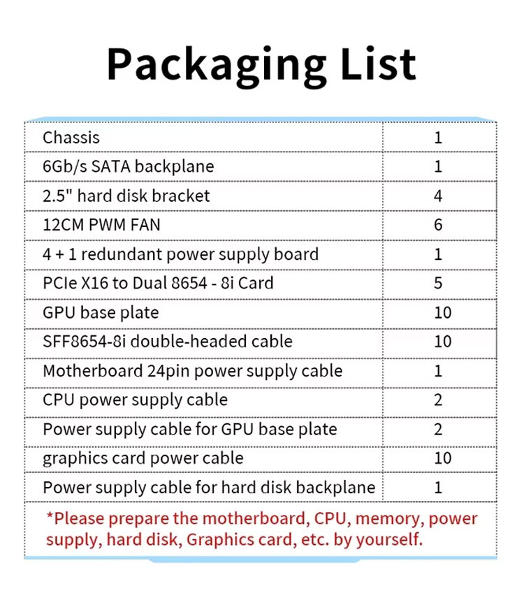 | GPU Riser | 8 Gen4 GPU risers and accompanying cables |
