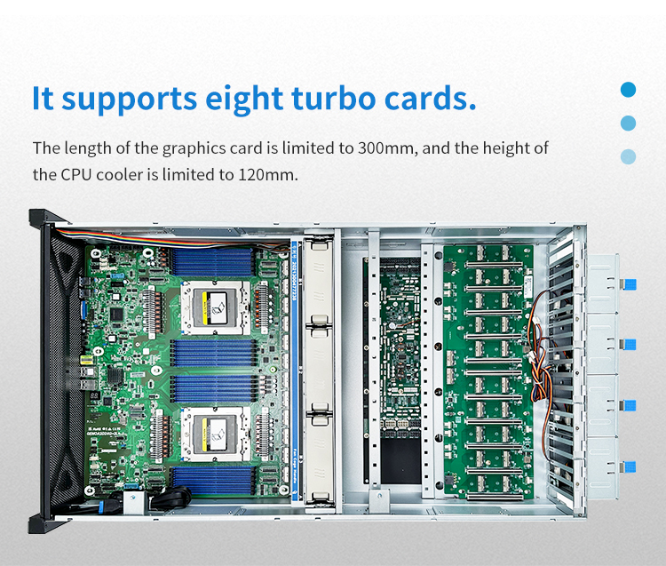 | GPU slot | Supports 8 GPUs, GPU maximum length limit: 300mm |