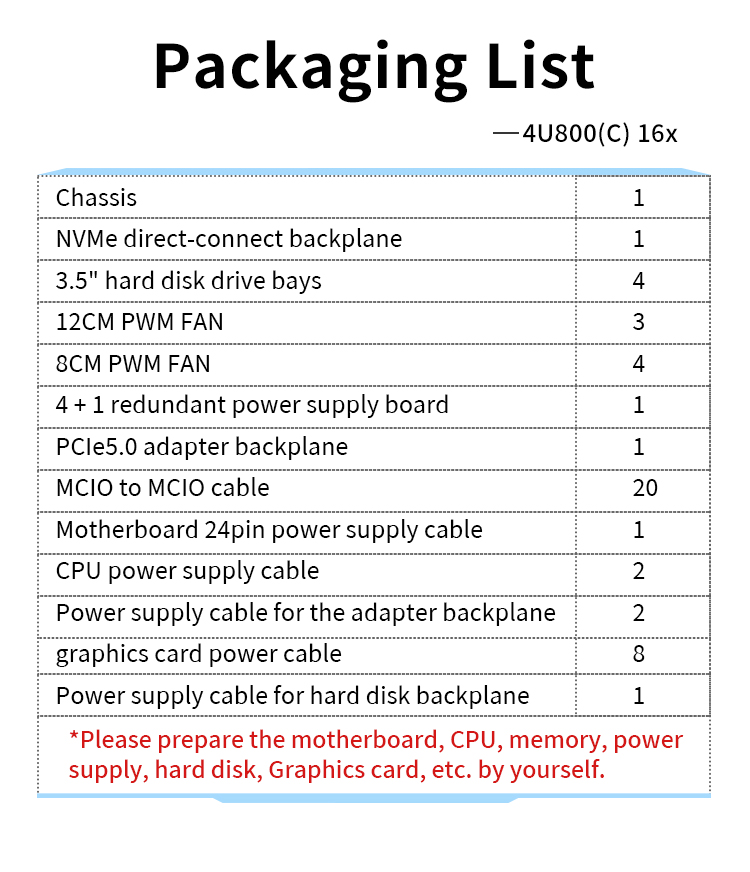 | GPU Riser | 8 Gen5 GPU risers and accompanying cables |