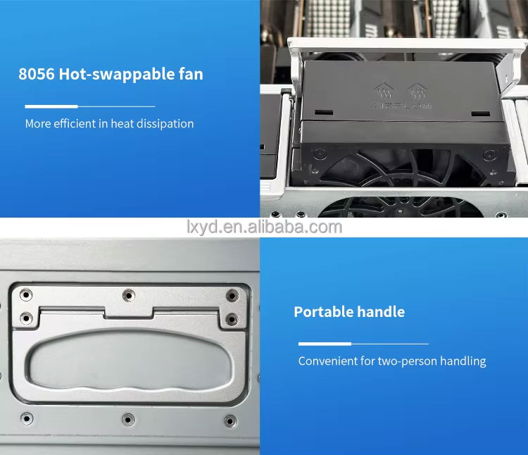 | Cooling Fan | 8 8056 hot-swappable fans,12 6038 fans, supports intelligent temperature control |