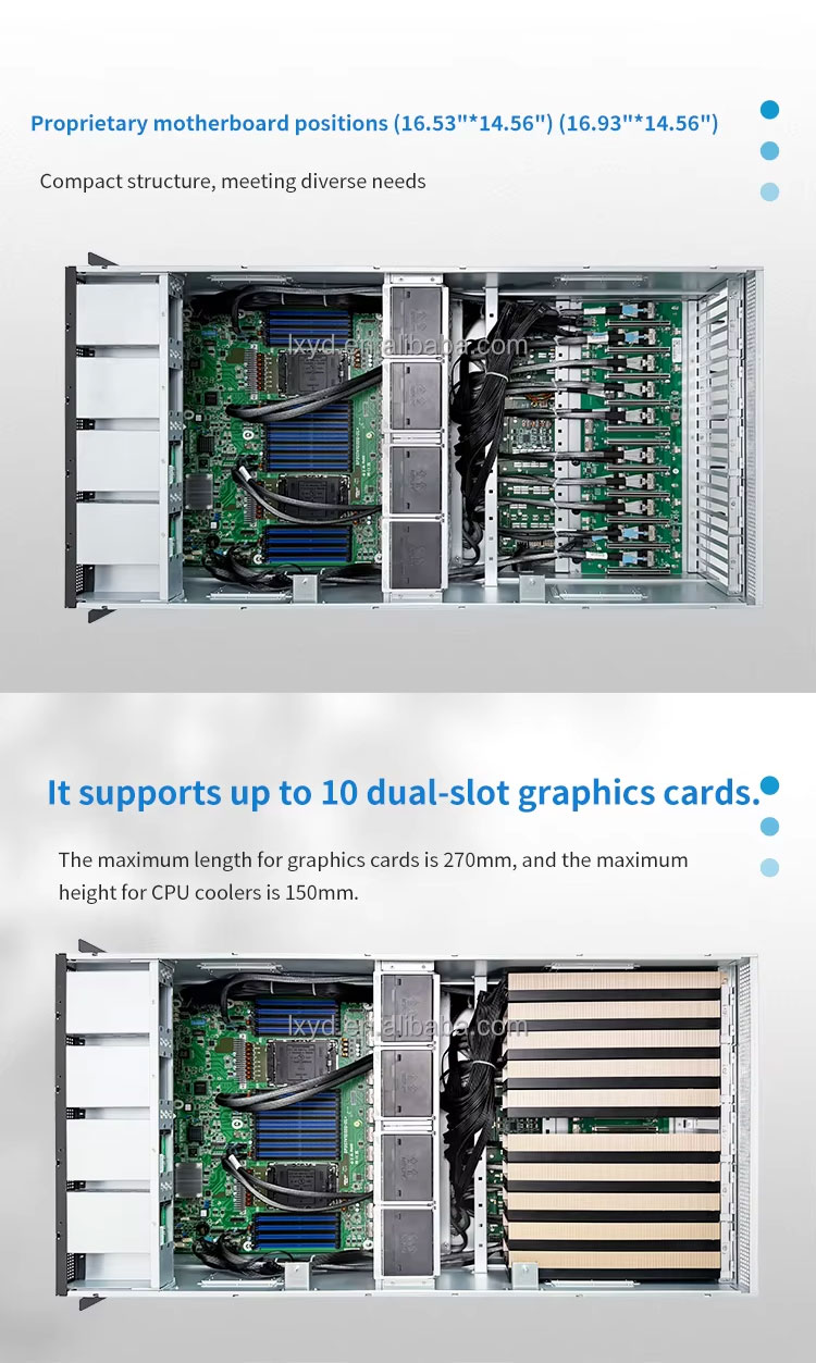 | GPU slot | Supports 8 GPUs, GPU maximum length limit: 270mm |
