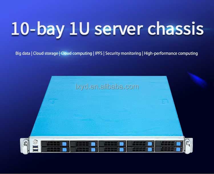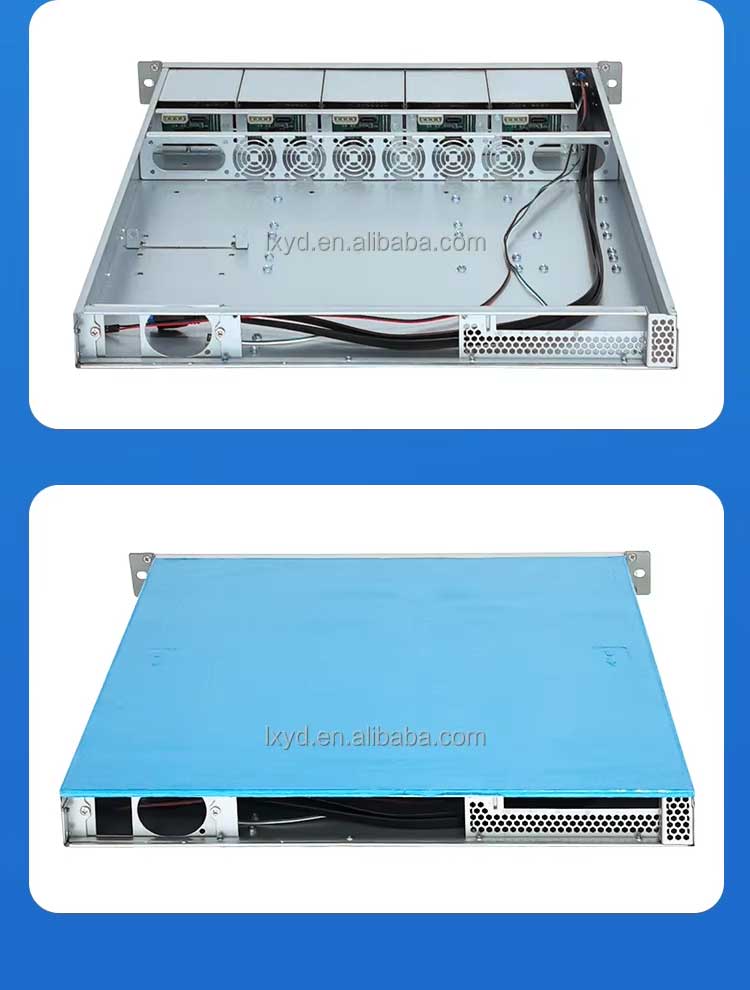 This 19″ server case of Rack-Mounted 1U industrial control chassis is built with quality fine 1.0mm SGCC material, ensuring durability and heat dissipation. It supports 10 *2.5″hot-swappable SATA drive bays , 6pcs 4028 fans, and a EATX motherboard. The front panel includes 2 USB3.0 ports, power and reset buttons, and multiple indicators for convenient operation and monitoring.