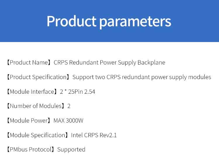 This Great Wall CRPS 2000W Dual Power Adapter is designed for servers and desktops, supporting two Intel CRPS Rev2.1 modules with a max power output of 3000W. It ensures high efficiency and stable power delivery through PMbus protocol support and dual 25Pin 2.54 module interfaces. The modular design simplifies installation and integration while offering robust performance. With products in stock and flexible MOQ, it caters to both small and large-scale orders, ensuring quick availability and reliable sourcing terms.