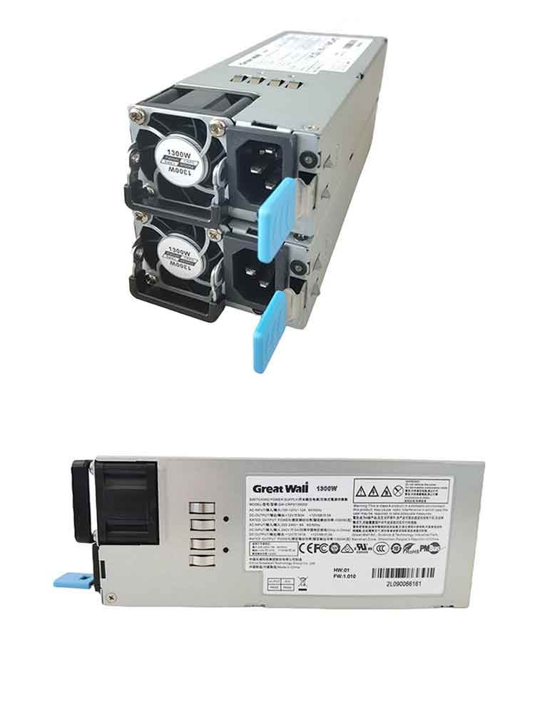 High-performance 1300W ACDC Great Wall power supply with Platinum efficiency, hot-plug capability, and universal input voltage (100-240V). Certified with CE, RoHS, UL, and more, ensuring compliance with global safety standards and enabling market access. Compact design (265mm x 78mm x 84mm) suits server applications, backed by a 3-year warranty for reliable performance.