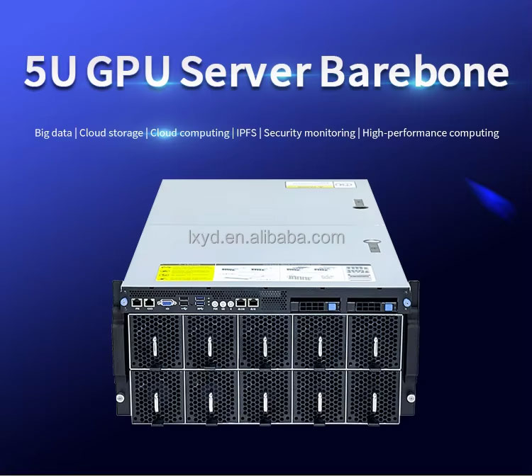 High Performance 5U Rack GPU server chassis with 4+1 CRPS power supply module, supports AI servers. Features quality fine 1.0mm SGCC material, 14 intelligent temperature control fans, NVMe direct-connect backplane, and 2 hot-swappable 2.5″ HDD/SSD bays. Packaged securely with PE foam.
