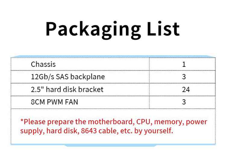 | HDD Bay | 24*2.5"hot-swappable SAS/SATA drive bays, 2*2.5" hot-swappable drives bays |