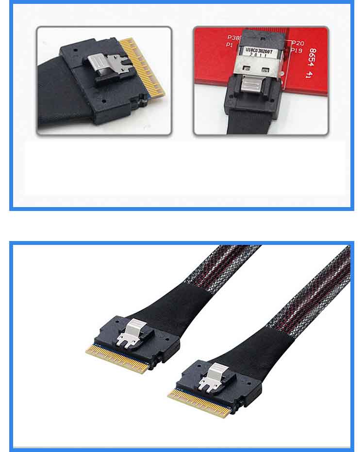 Feature highlights:The SFF-8654 8i to SFF-8654 8i cable is a high-density SAS cable supporting 8-channel data transmission. It’s compliant with SAS 4.0 (up to 48Gbps), enabling high-speed, low-loss signal connection between servers and storage devices. Equipped with anti-interference shielding, it ensures stable data transfer, serving as an efficient interconnection solution for enterprise-level storage systems.
