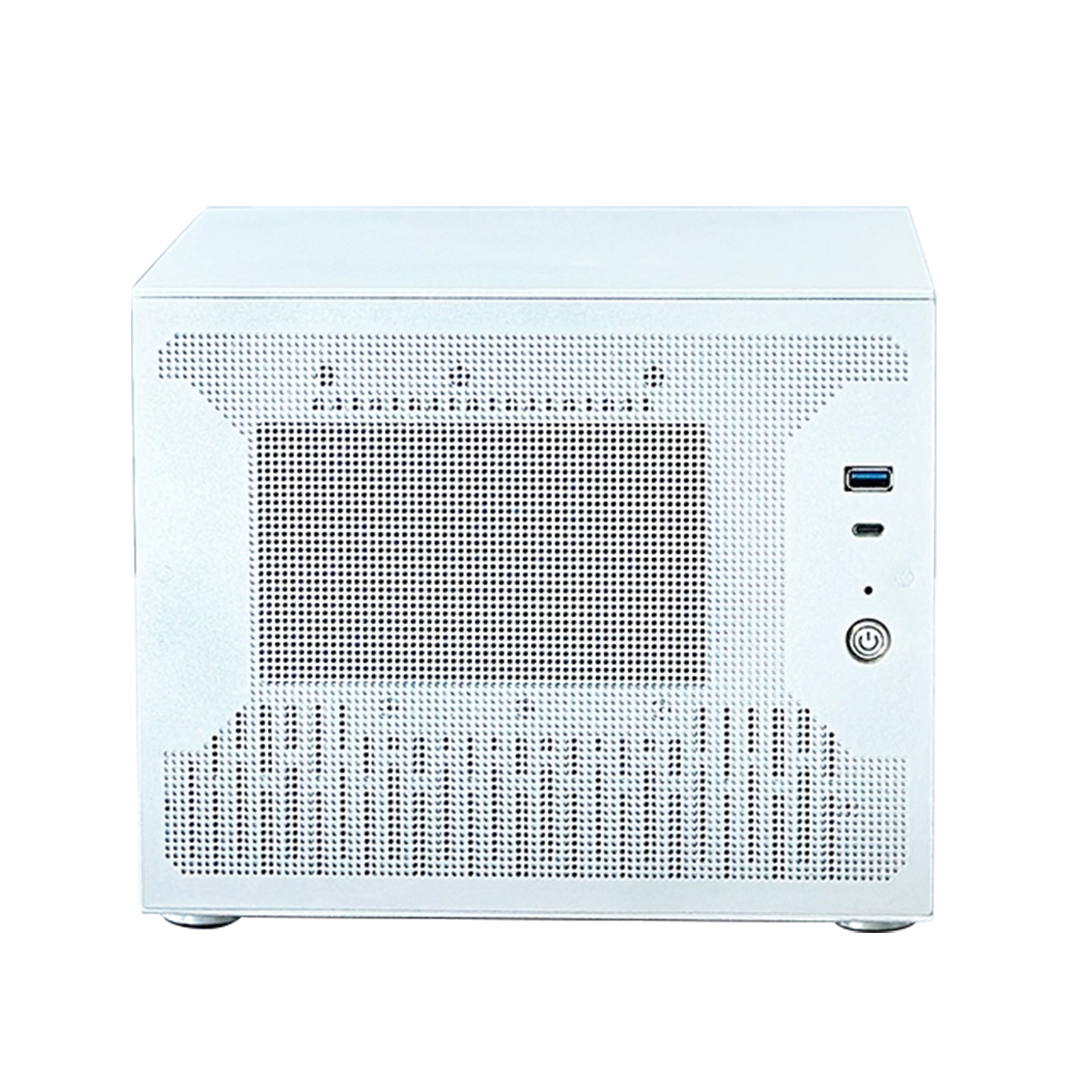 Chassis and side panels — sandblasted & anodized silver; front bezel and fan bracket — silver paint.