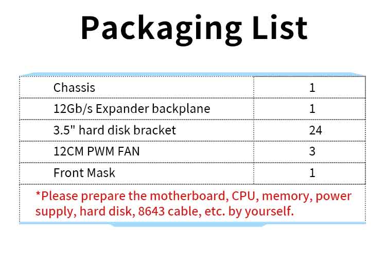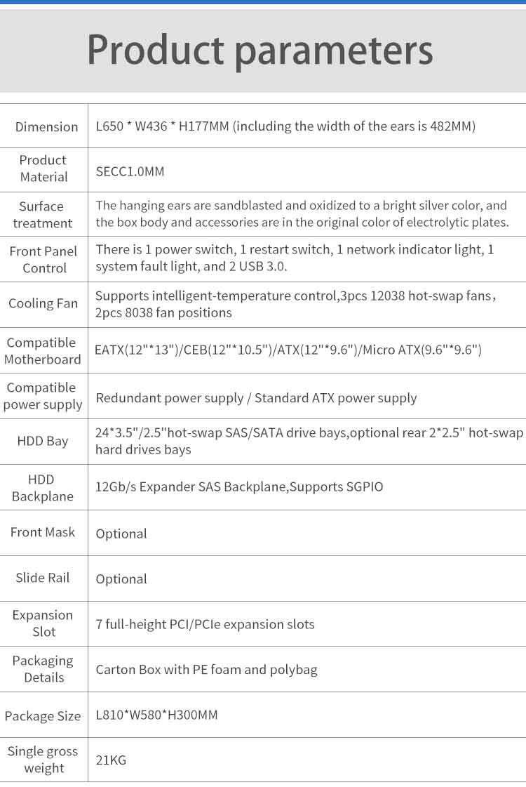 | HDD Bay | 24*3.5"/2.5"hot-swappable SAS/SATA drive bays |