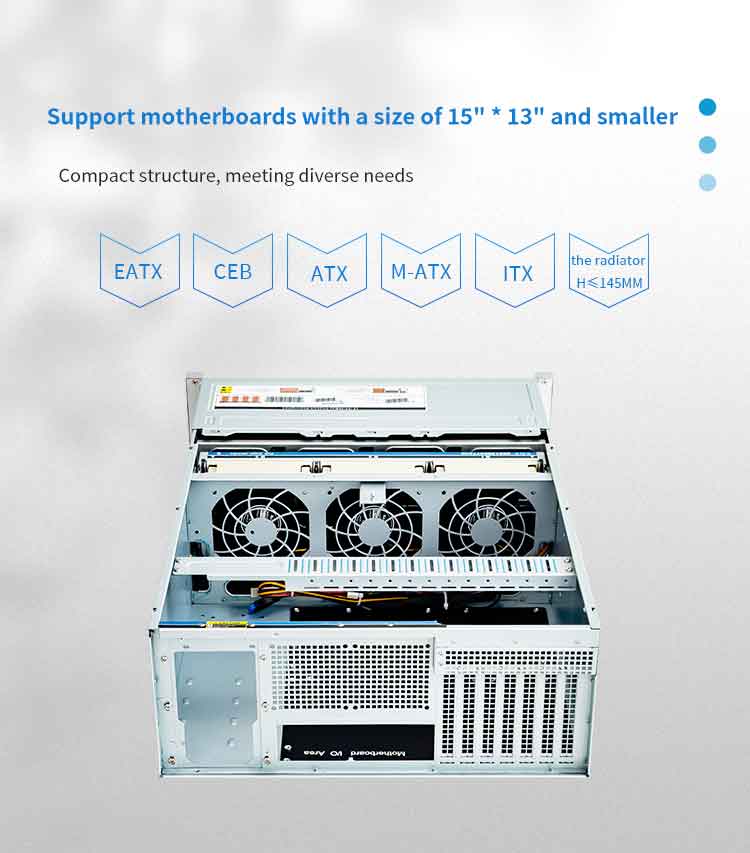 | Suitable Motherboard | EATX(12"*13")/CEB(12"*10.5")/ATX(12"*9.6")/Micro ATX(9.6"*9.6") |