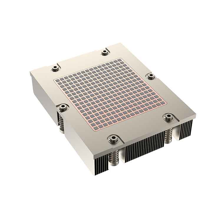The composite structure of aluminum alloy base and copper core combines the high thermal conductivity of copper (ensuring rapid heat absorption) and the lightweight, large-area heat dissipation advantage of aluminum alloy. The dense Z-type fin matrix maximizes heat exchange area, while the high-speed fan with adjustable speed promotes air circulation, enabling quick heat transfer and maintaining equipment temperature within a safe range.