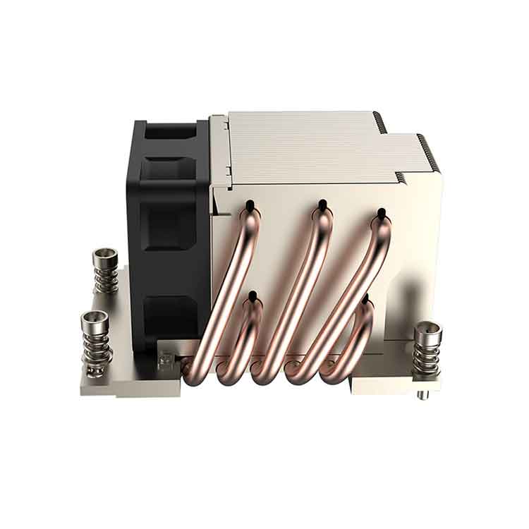The composite structure of aluminum alloy base and copper core combines the high thermal conductivity of copper (ensuring rapid heat absorption) and the lightweight, large-area heat dissipation advantage of aluminum alloy. The dense Z-type fin matrix maximizes heat exchange area, while the high-speed fan with adjustable speed promotes air circulation, enabling quick heat transfer and maintaining equipment temperature within a safe range.